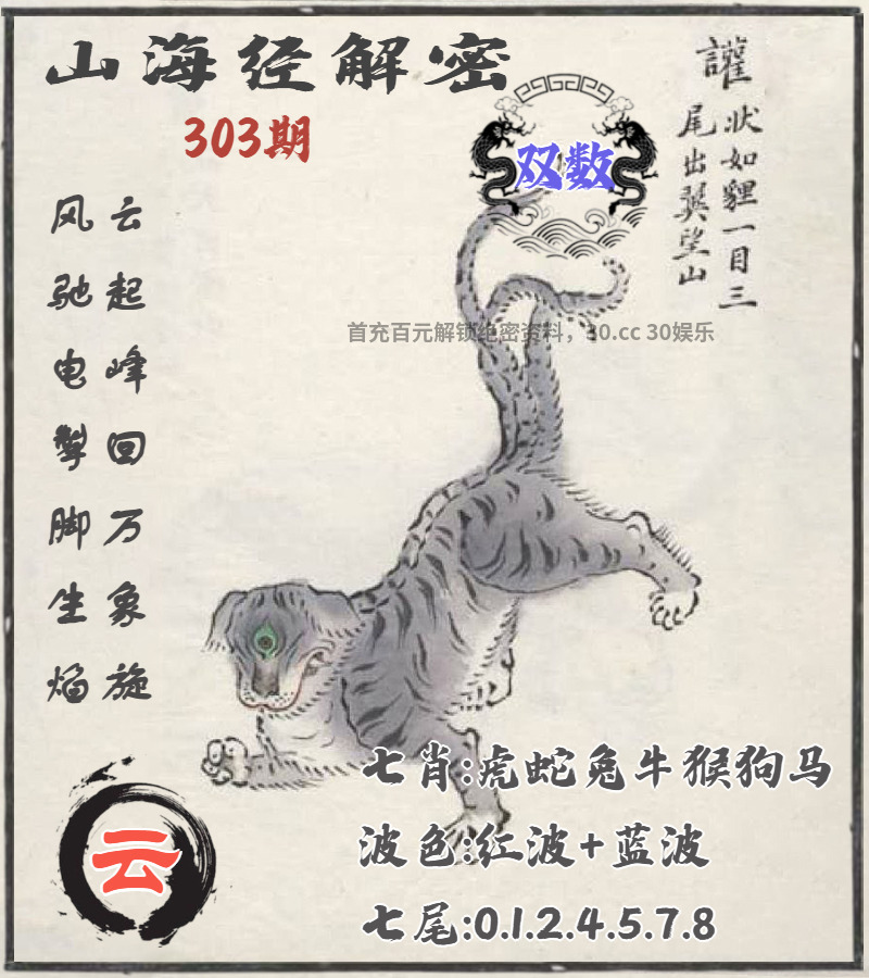 300期:推荐六肖〖狗虎兔马龙羊〗开:虎40准