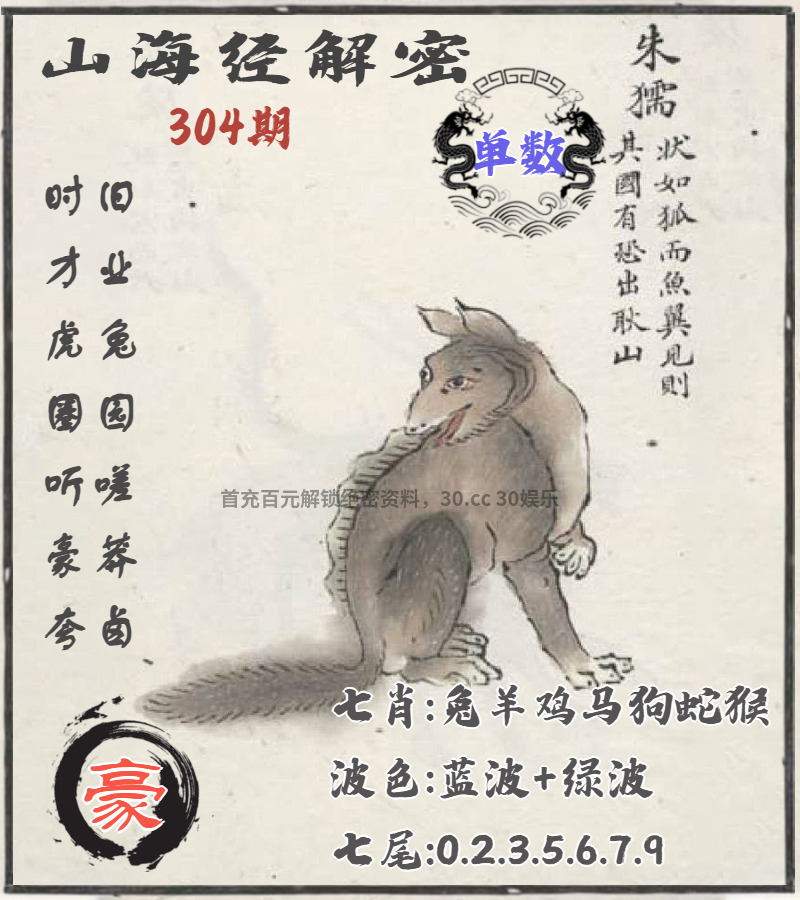 303期:推荐六肖〖龙马羊鸡猪猴〗开:兔15