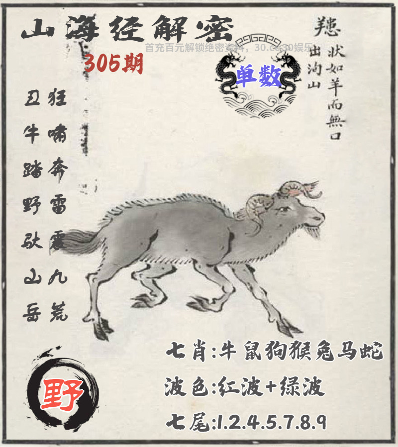 301期:推荐六肖〖鸡鼠牛猪狗虎〗开:牛05准